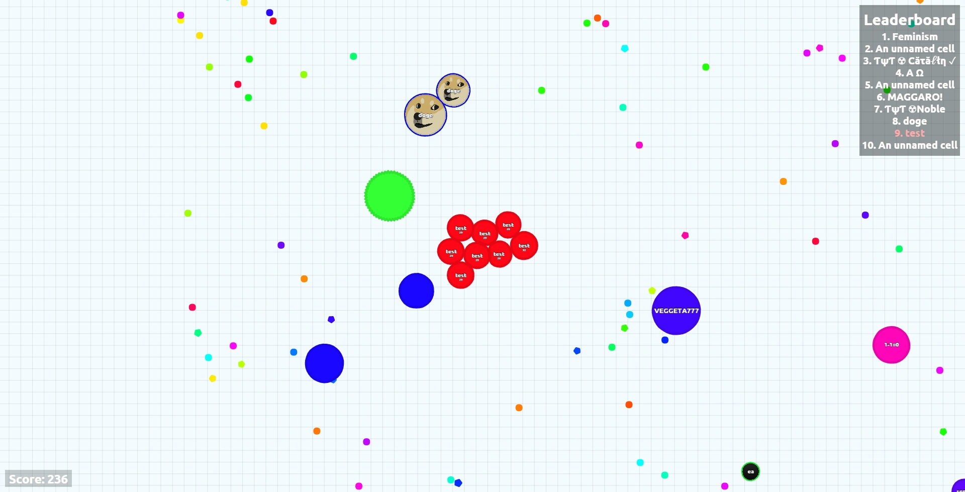 Есть такой приём с вирусом.Вы прячетесь в вирус и ждёте маленьких игроков.Когда идут большие,они прячутся в вирусы.Вы съели игрока.Но главное чтобы,не попасть на больших.