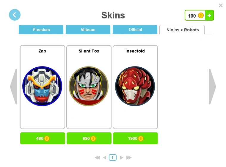 The Ninjas vs Robots skins included the following: Zap, Silent Fox and Insectoid.