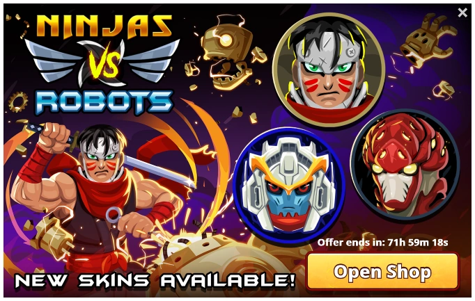 Note: The Ninjas vs Robots sub-offer has been released many times after its initial debut in 2017. The included skins and prices remained the same for every release.