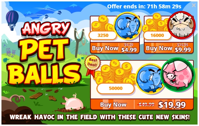 The Angry Pet Balls skins included the following: Elephant Ball, Sheep Ball and Pig Ball.