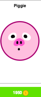 The Piggie skin can be purchased in the store for 1950 coins. When equipped, the player's cell will appear as a pig's face making a slightly surprised look.