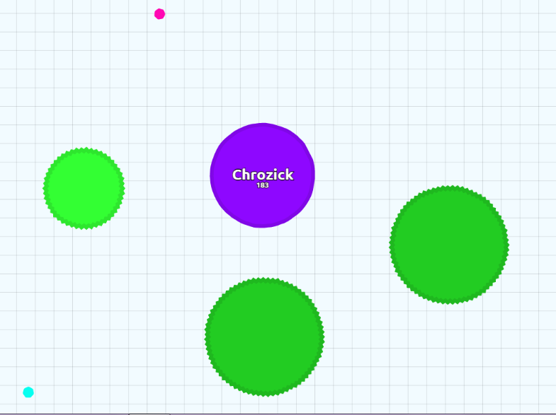 The experimental mode added a twist to the existing normal virus, changing what happens when a player ejects mass into it. Instead of shooting out another virus, ejecting mass into a virus causes it to move away from the direction of the ejection. Each ejection makes the virus move 1-2 squares on the map, accelerating with faster ejections. This action makes the virus ejections easier to dodge and counter, as well as forcing cells to use viruses they find rather than creating more themselves. This also removes the problem of moving around the original virus to eat a cell that you have just split with an ejected one.